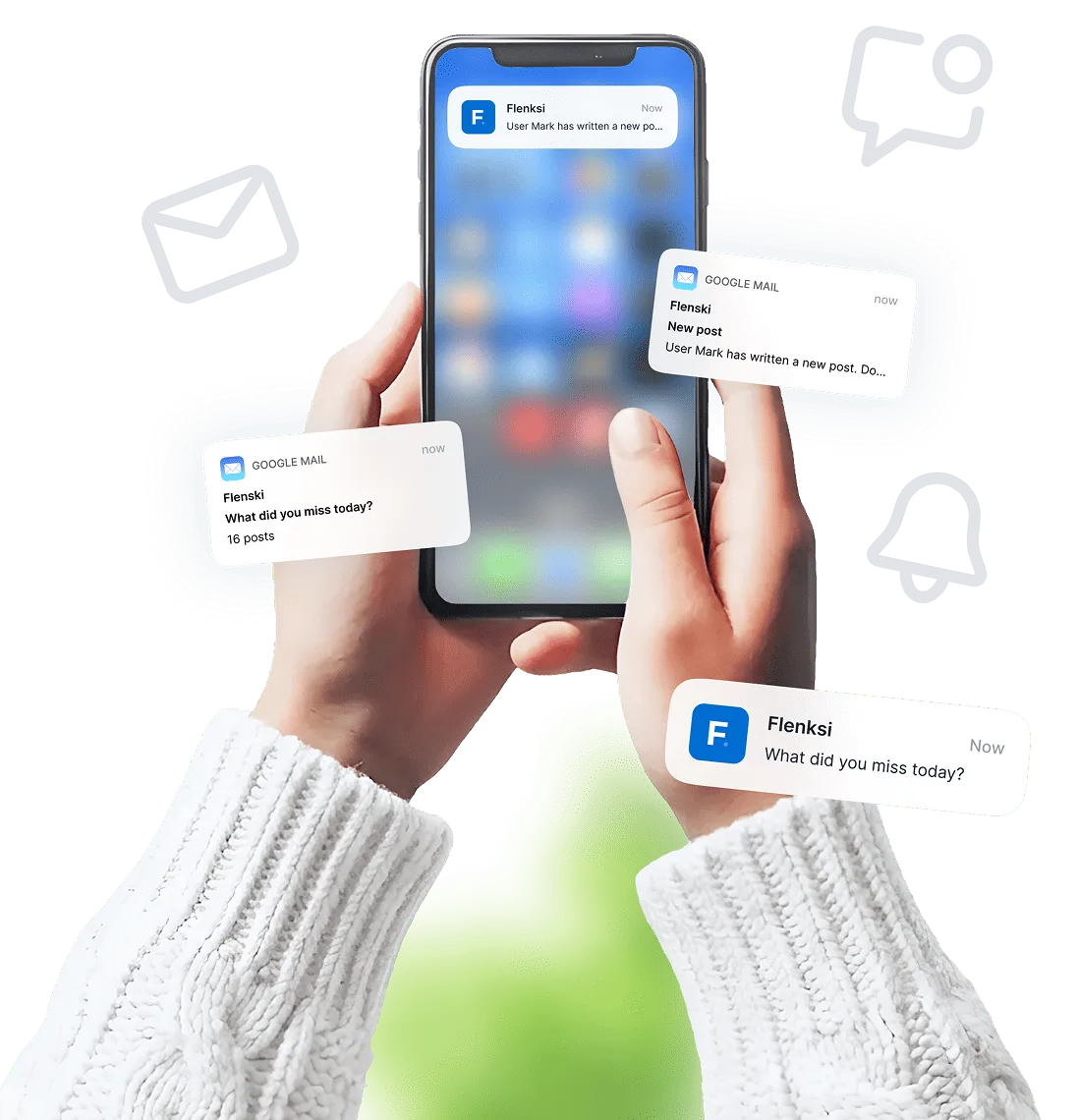 Sende tägliche Videos oder Sprachnachrichten direkt an deine Nutzer. Mit Flenski Notifications erreichst du deine Community zusätzlich über individuelle Benachrichtigungen – per Text, Video oder Voice – genau dann, wenn es relevant ist.