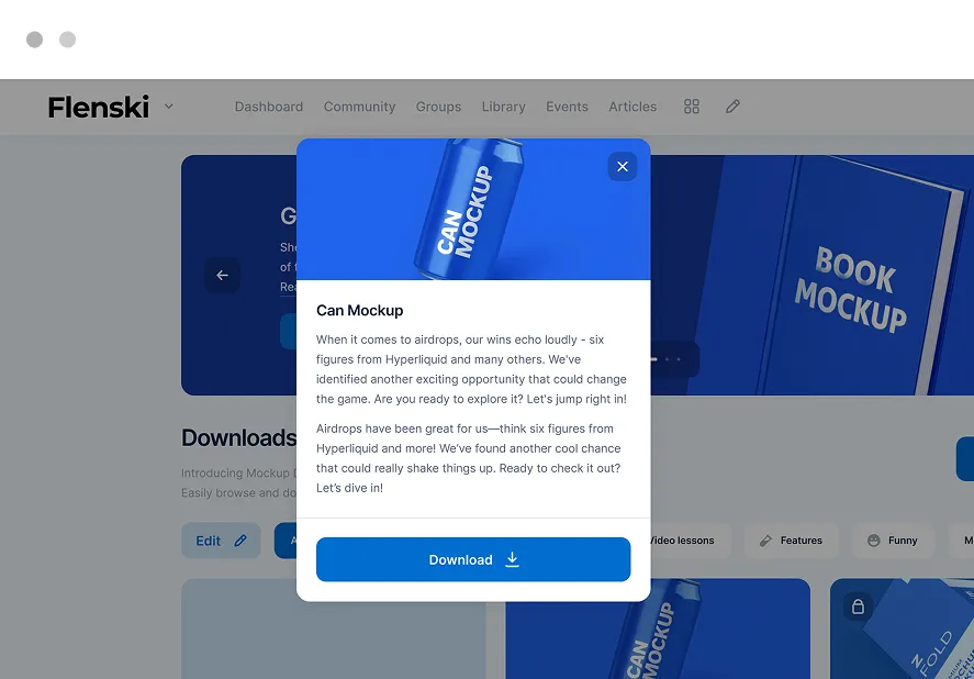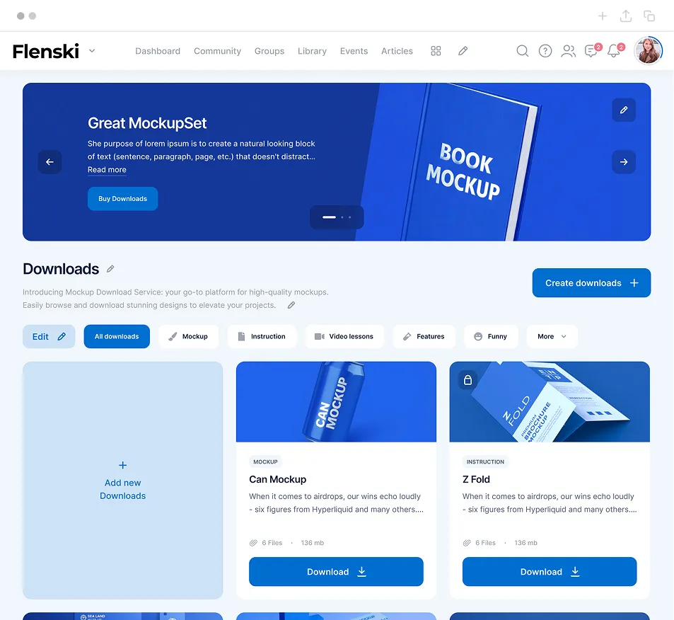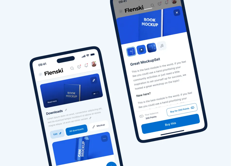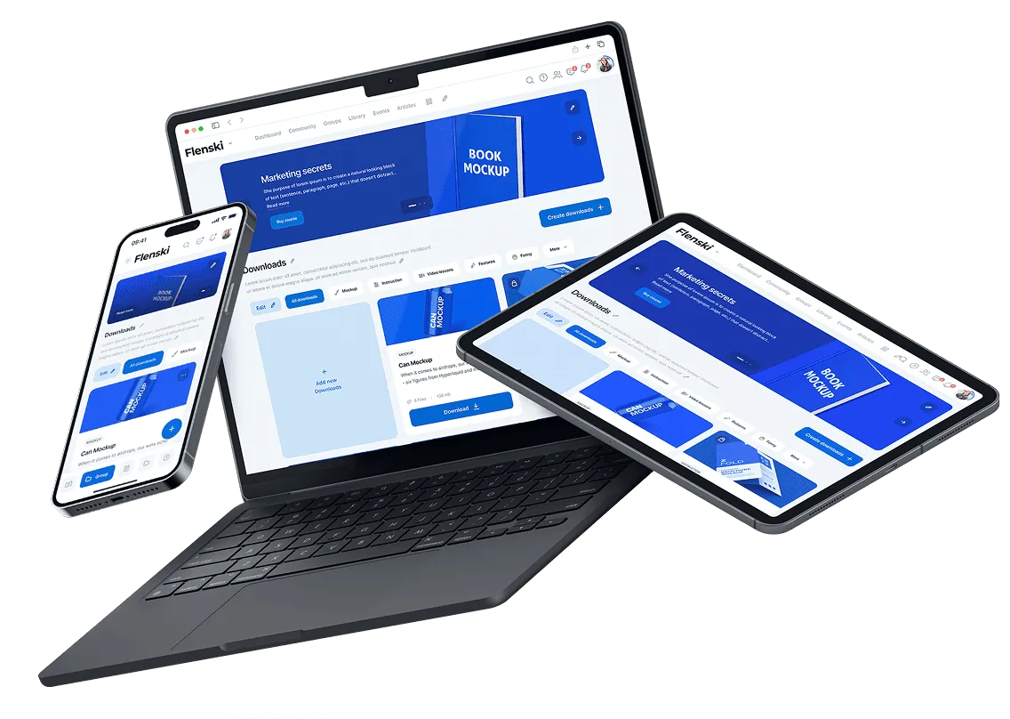 Mit Flenski verwaltest und verkaufst du digitale Downloads direkt in deinem Mitgliederbereich. Ob Vorlagen, Arbeitsmaterialien oder exklusive Dateien – deine Inhalte sind hochwertig präsentiert, klar strukturiert und jederzeit verfügbar.